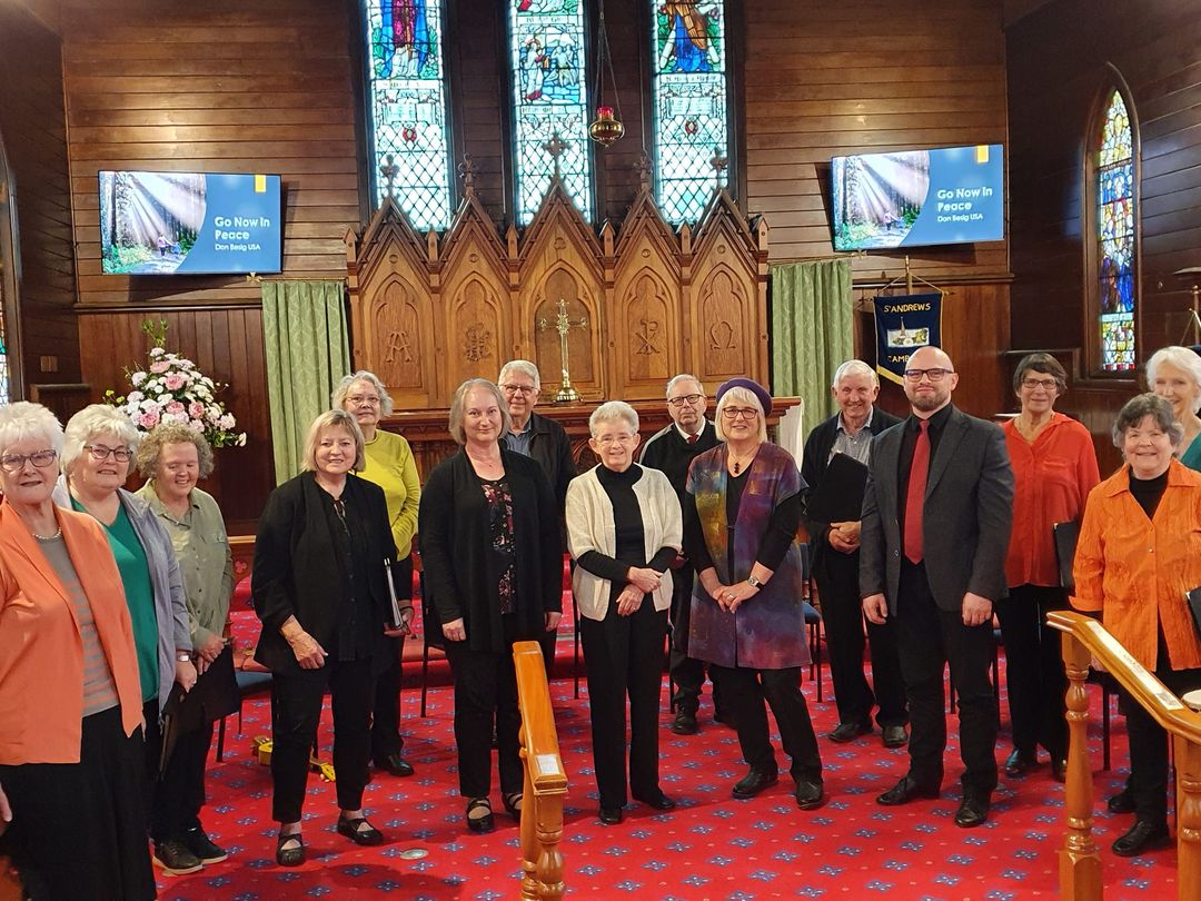 Venite Choir sings sacred and spiritual music, at St Andrew’s on the first Sunday of the month, and on special occasions, and also at community events. Venite sings at funerals on request, and gives the occasional concert and birthday surprise.